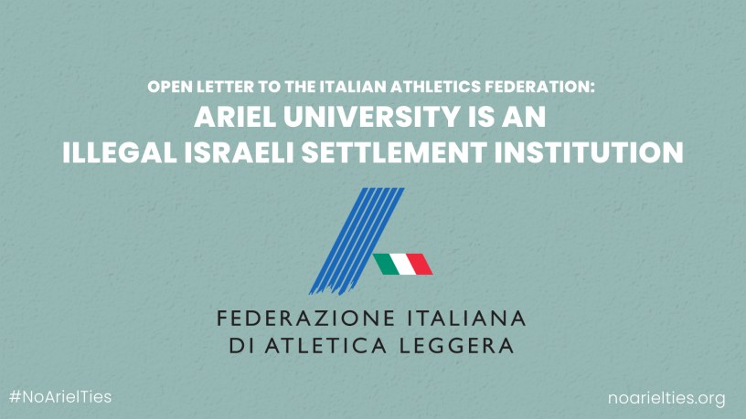 We are writing to you from the No Academic Business As Usual with Ariel University campaign in regards to your IV National Convention of Athletics Technicians, to be held in Ancona, Italy, 4-6 April 2025.